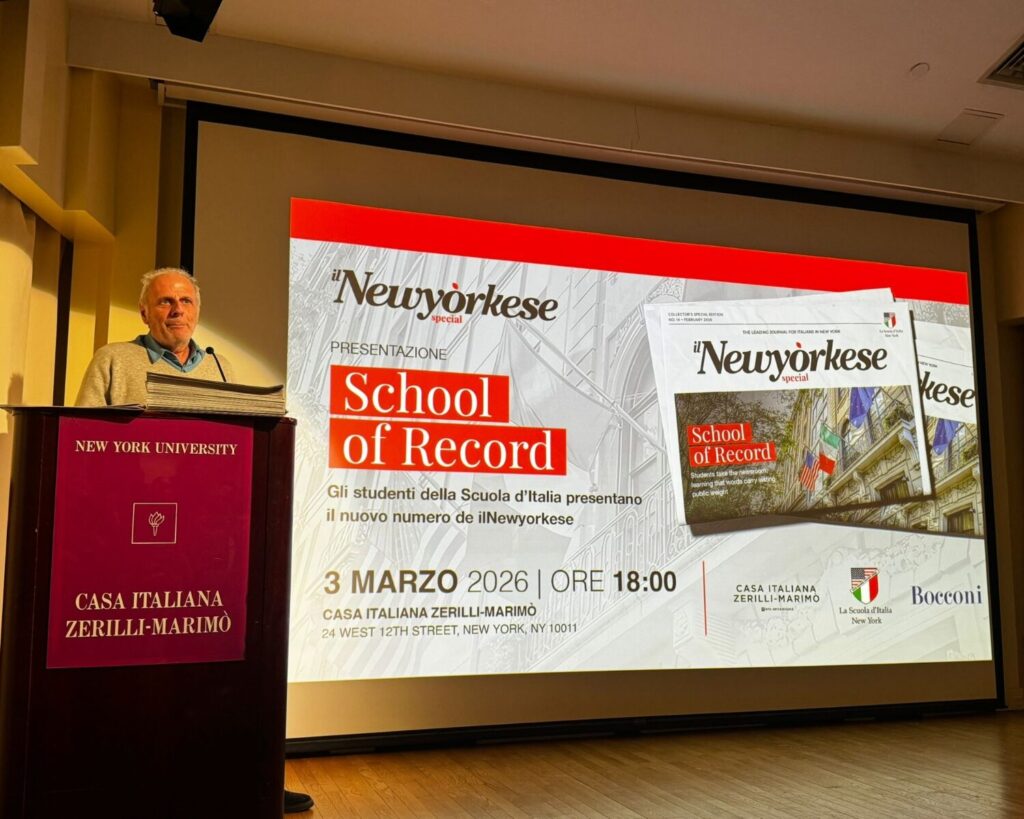 Si è svolta ieri, alla Casa Italiana Zerilli-Marimò della New York University, la presentazione di “School of Record”, il numero speciale de ilNewyorkese interamente ideato e realizzato dagli studenti de La Scuola d’Italia Guglielmo Marconi.