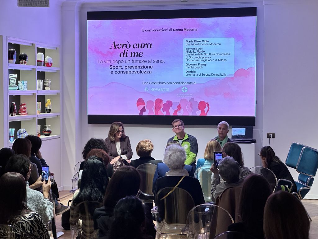 L’impegno di Novartis durante l’ottobre rosa, oltre a portare avanti la campagna #PronteAPrevenire, si è concretizzato anche con il sostegno – con il contributo non condizionante – dell’incontro ‘Avrò cura di me. Una nuova vita dopo un tumore al senò di Donna Moderna, sull’importanza della prevenzione delle recidive e il ruolo dell’attività fisica come uno dei contributi fondamentali del benessere psico-fisico delle pazienti.